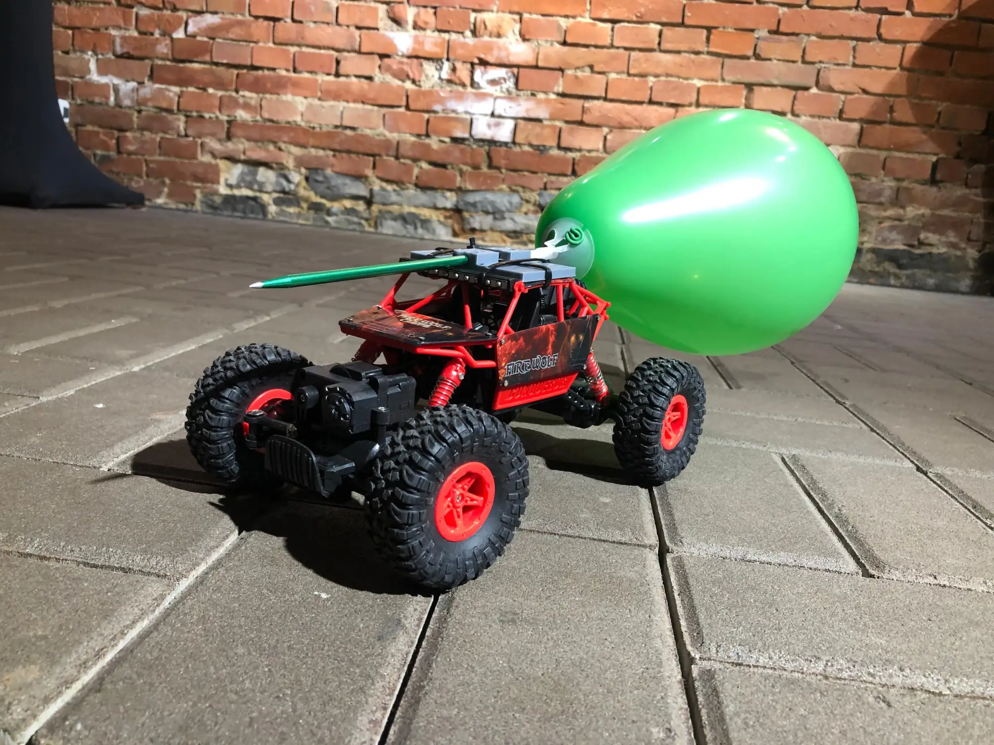 Kdo říká, že balónky jsou jen pro děti? V balónkovém klání s RC terénními auty se z nevinné zábavy stává nelítostný boj o přežití! Každé auto má svůj balón, každá rána se počítá a vítězí ten, komu zůstane jediný nafouknutý.