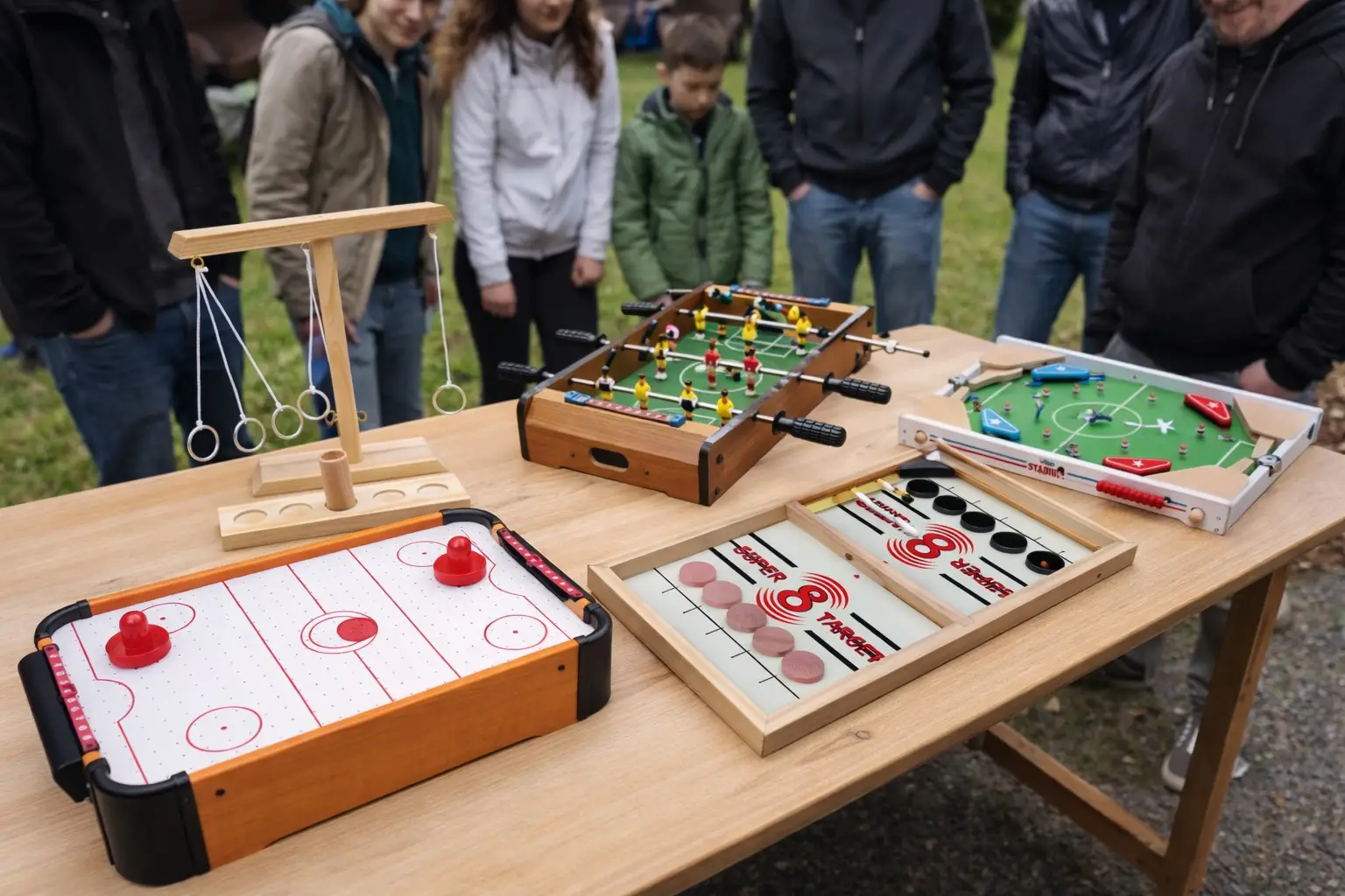 - Kompletní servis v ceně: Zajišťujeme veškeré potřebné vybavení a odborné zázemí (profesionální obsluhu, pět atrakcí - air hokej, stolní fotbal, swing ring, pukec, pinball).