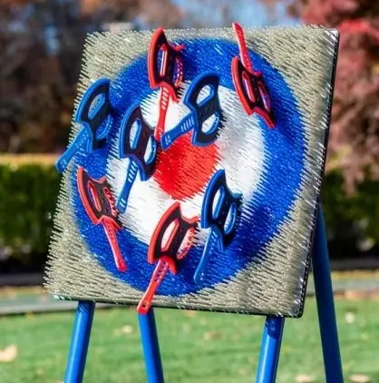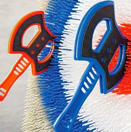 - Speciální štětinový terč, do kterého se vrhají plastové sekery - čím blíž středu, tím více bodů získáte